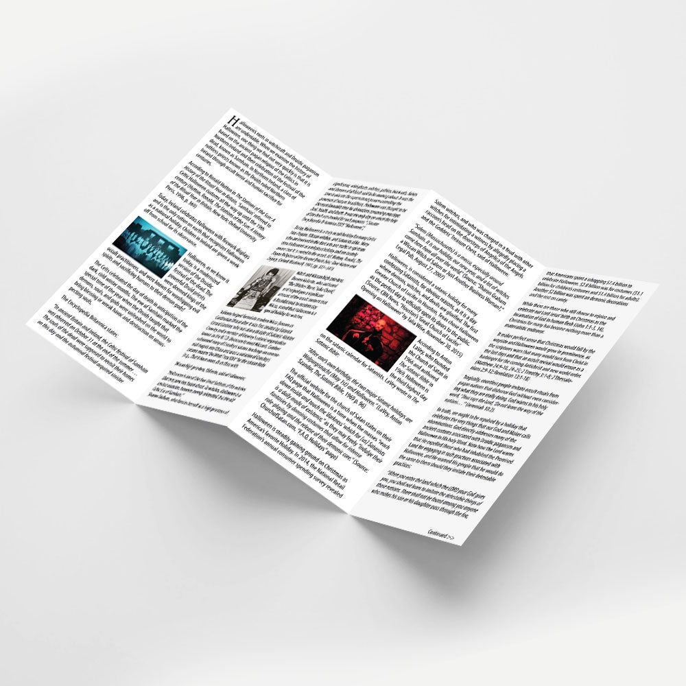 Good job! I like to give them away and put them in the Halloween section of the local stores. I would like everyone to know the origins and evil of this popular holiday.