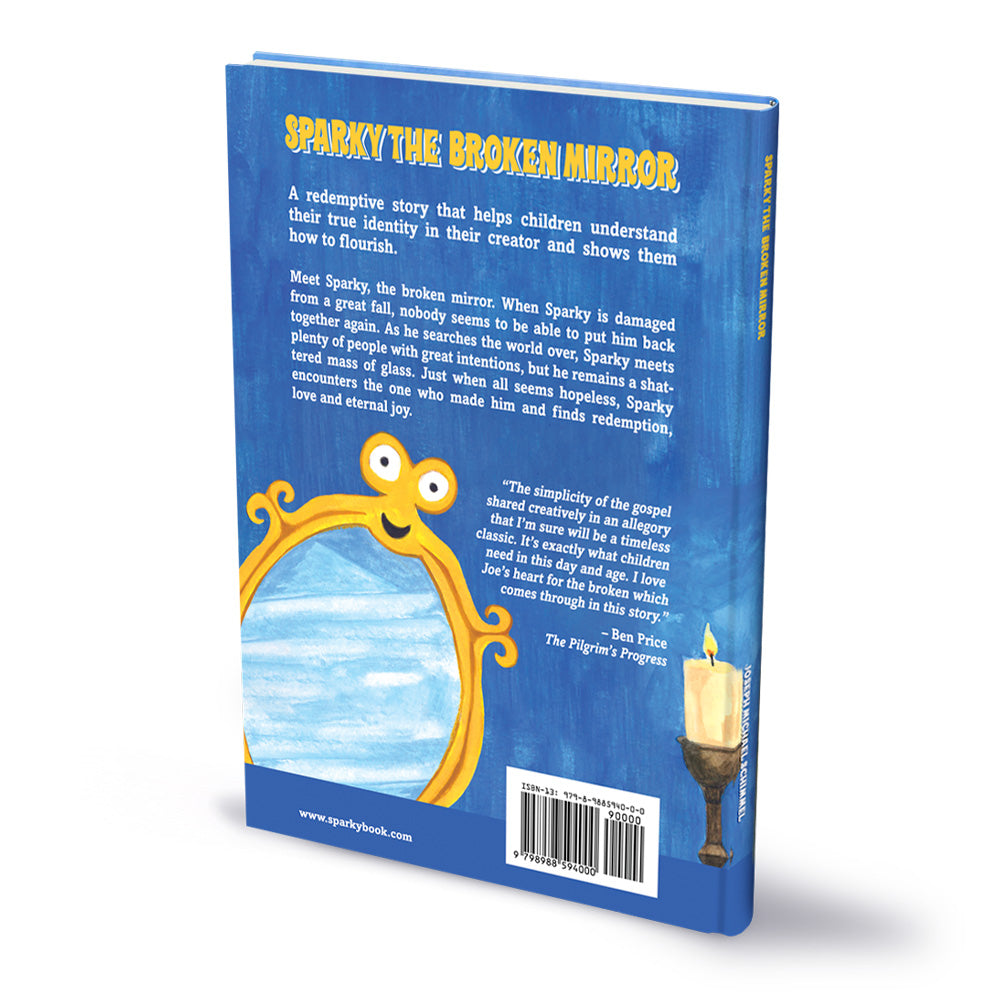Meet Sparky, the broken mirror. When Sparky is damaged from a great fall, nobody seems to be able to put him back together again. As he searches the world over, Sparky meets plenty of people with great intentions, but he remains a shattered mass of glass. Just when all seems hopeless, Sparky encounters the one who made him and finds redemption, love and eternal joy.