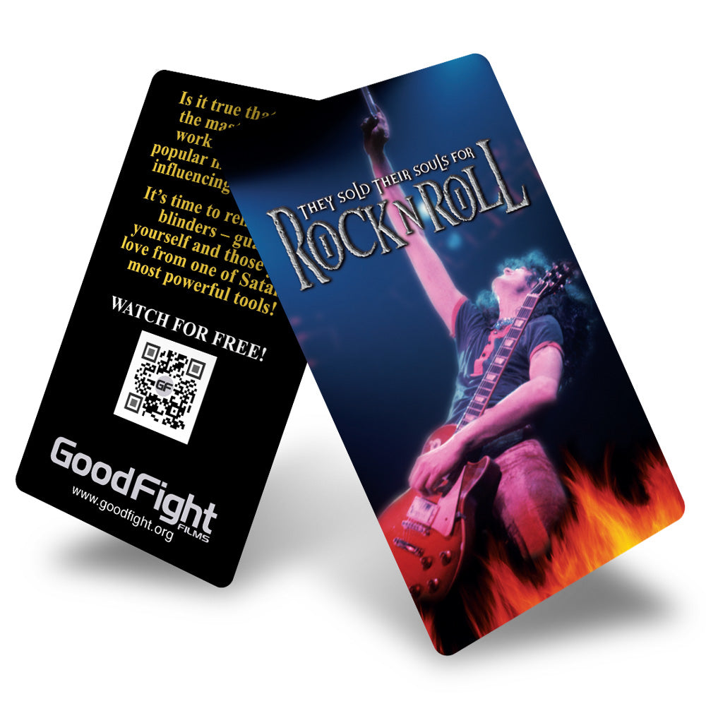 Introducing a great and easy way to share They Sold Their Souls for Rock n Roll with others with ministry cards! We are now making available our powerful evangelical tool we use when witnessing or when we’re just out and about. These business card sized handouts are small enough to fit in your pocket, purse, or wallet so you can carry them with you wherever you go. On the back of the card is a QR Code. When the code is scanned it brings the holder of the card right to our special landing page which features the 3-hour version of They Sold Their Souls for Rock n Roll to watch for FREE!